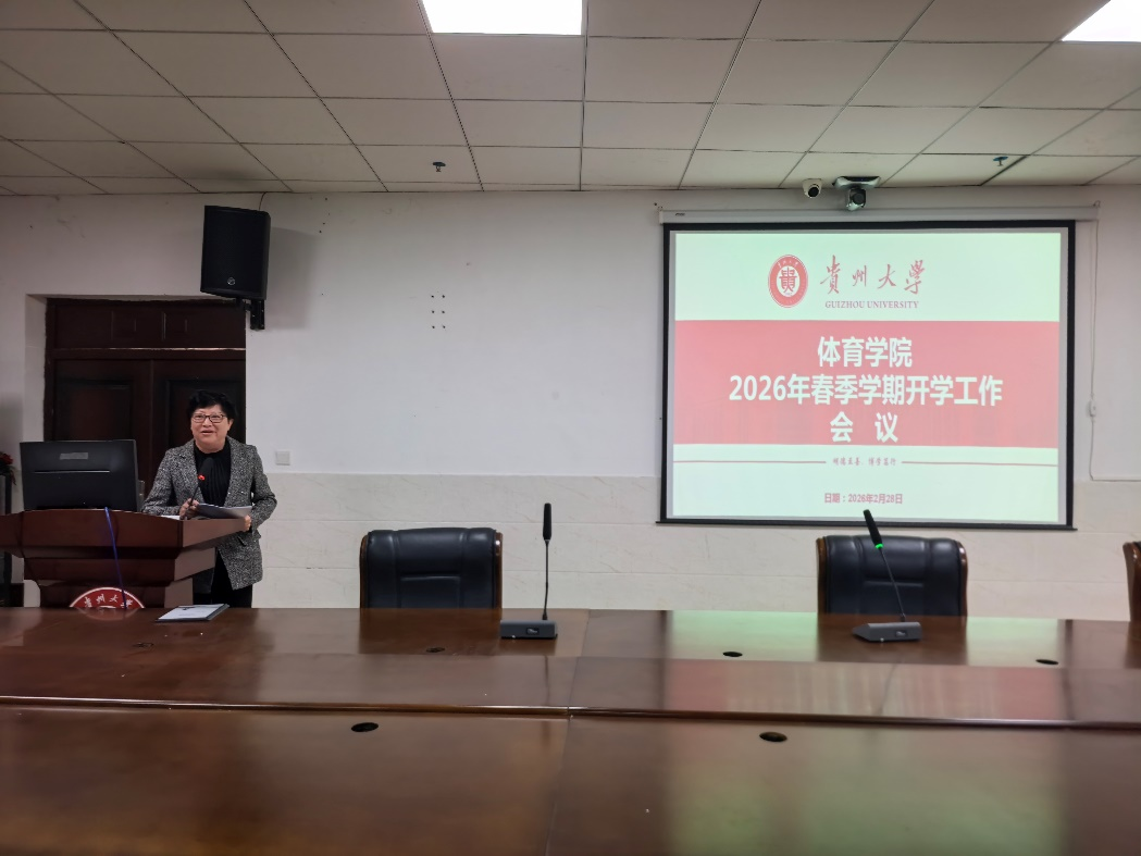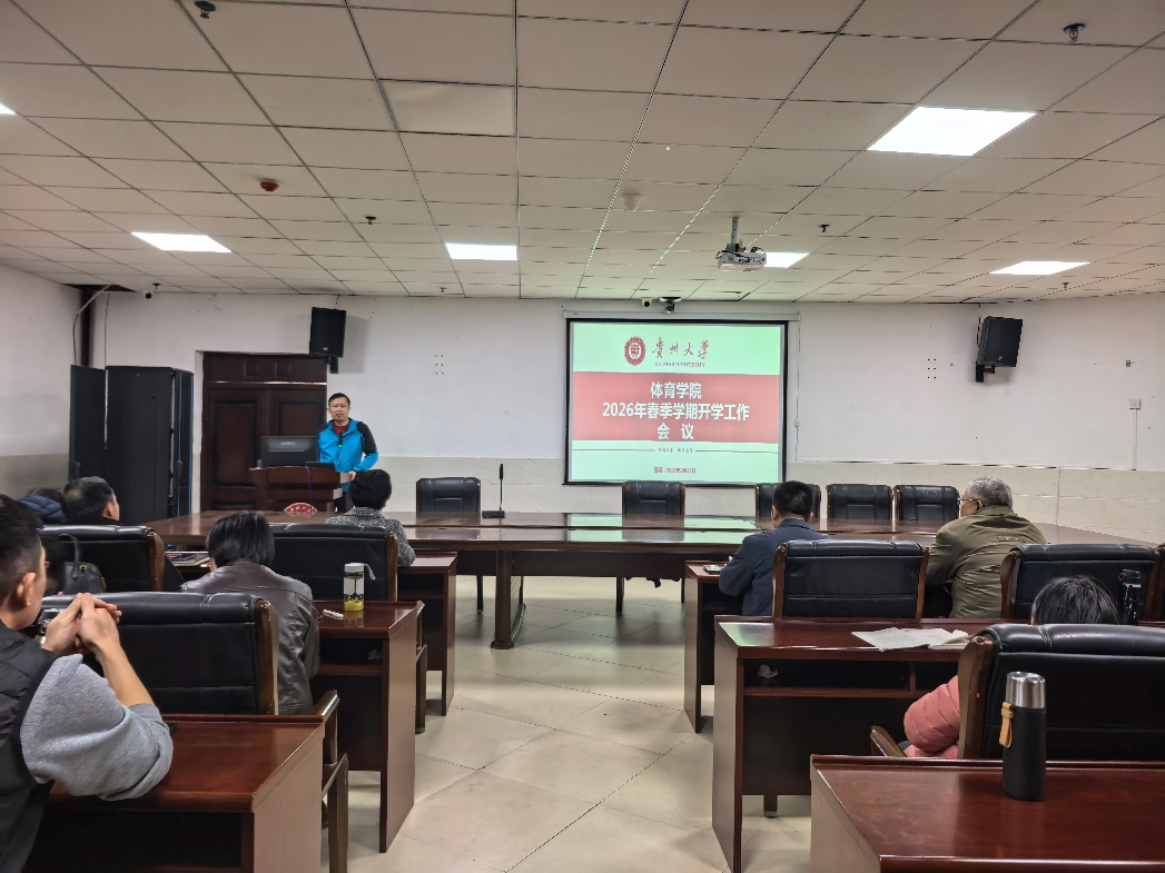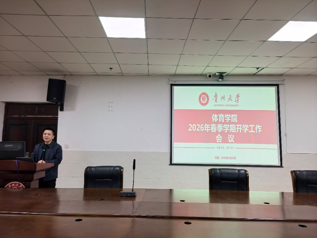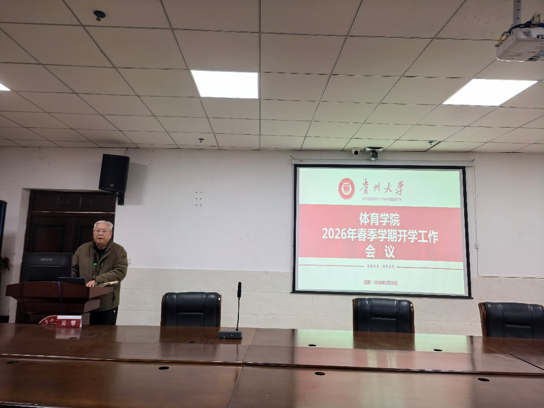 王华倬院长在会上总结回顾了2025年学院在体质测试、体育竞赛、科研成果、学科建设等方面取得的成绩,并对2026年工作提出明确要求。他指出,新学期要加快推进体育学一级学科硕士点申报,加强高水平论文发表和科研项目申报,推动“贵州马拉松路跑学院”建设,争取在国家级赛事和科研平台建设中取得新突破。